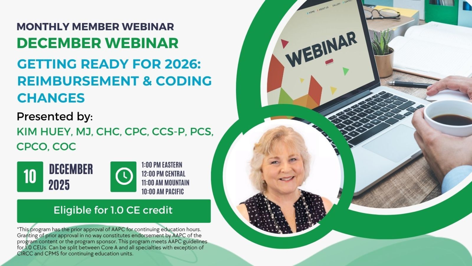 Getting Ready for 2026: Reimbursement & Coding Changes - Kim Huey, MJ, CHC, CPC, CCS-P, PCS, CPCO, COC
